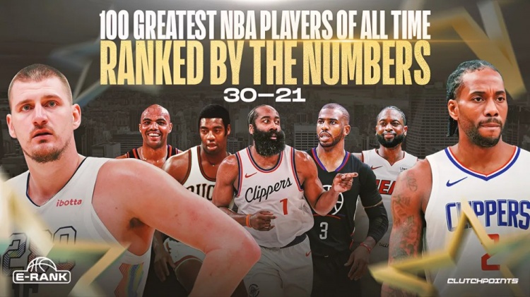9月11日讯 著名媒体Clutch Points利用其旗下记者Josh Eberley创造的"E-Rank"的计算公式,评选了NBA历史球星Top100,今天更新了第30-21位: